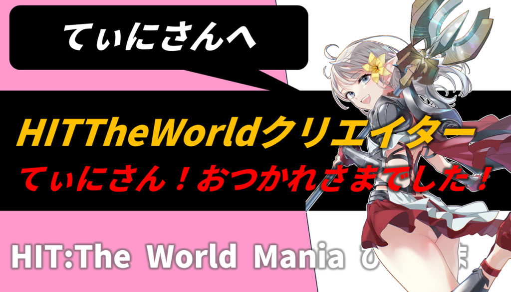 クリエイターご卒業! おはこんにちばんはひーまにです! 本日は12月21日のラストライブでHITTheWorldクリエイターズを卒業された 「てぃにさん」ことタイニーさんについて、企画の最終ポストが紹介されてましたのでご紹介いたします! ご卒業配信のライブ... -