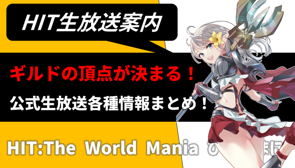 最新生放送の内容をチェック! ご無沙汰しておりました! おはこんにちばんはひーまにです! 今回からまた毎日HITTheWorldMania、更新してまいりますよ! というわけで今回の記事は 3月25日に開催された「HIT : The World公式ミニ生放送!HIT The 生放送~... -