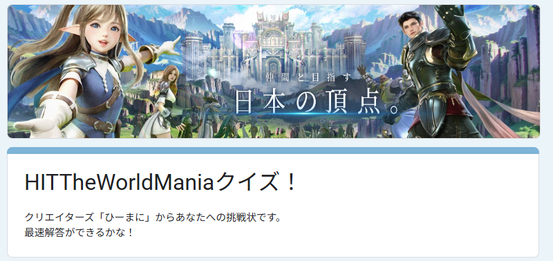 HITTheWorldManiaクイズ!開幕です!