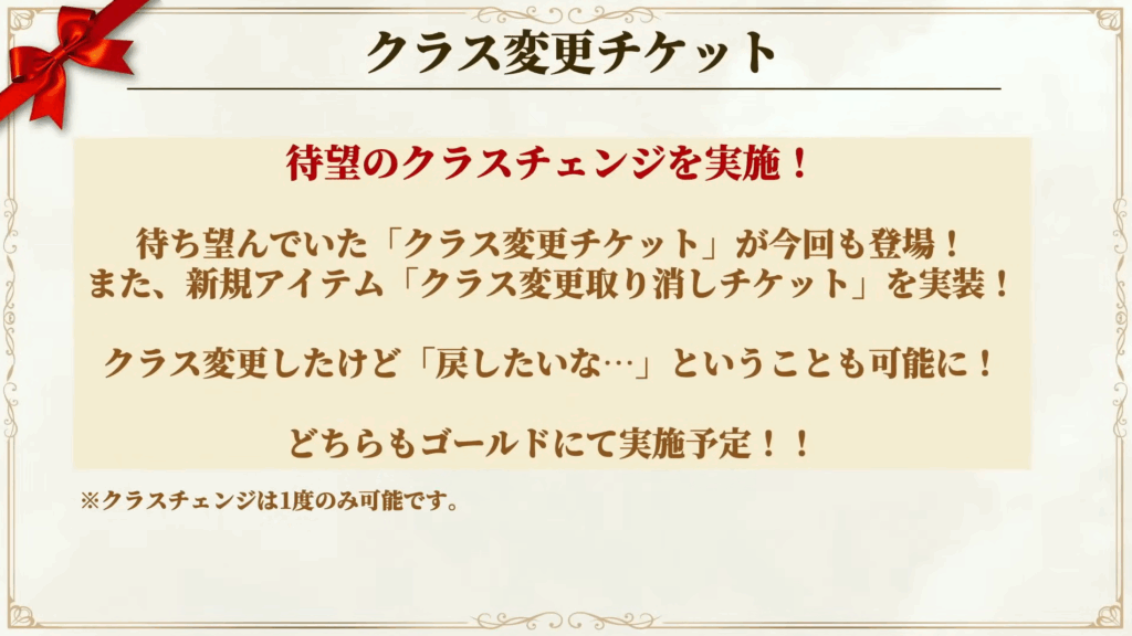 - 成長報酬や、クラス変更チケット(取り消し可能な形式)の導入が決定。9月17日から。