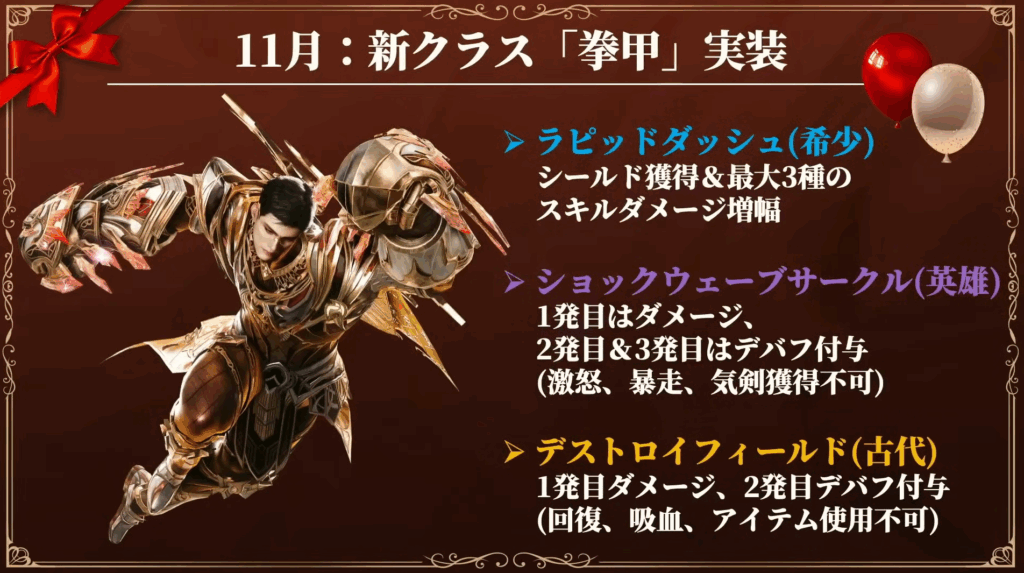 - 11月26日:新クラス「拳甲(けんこう)」実装