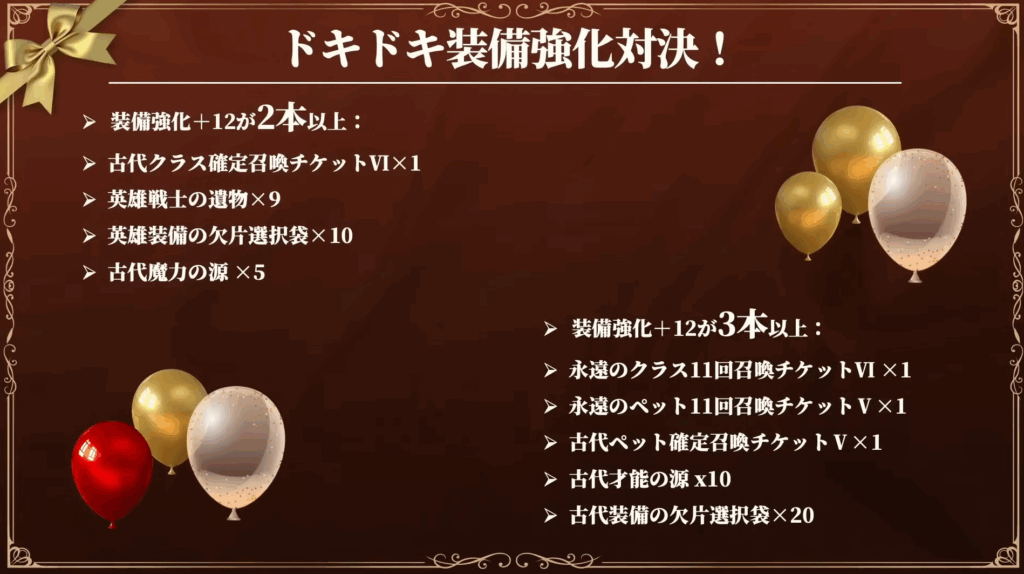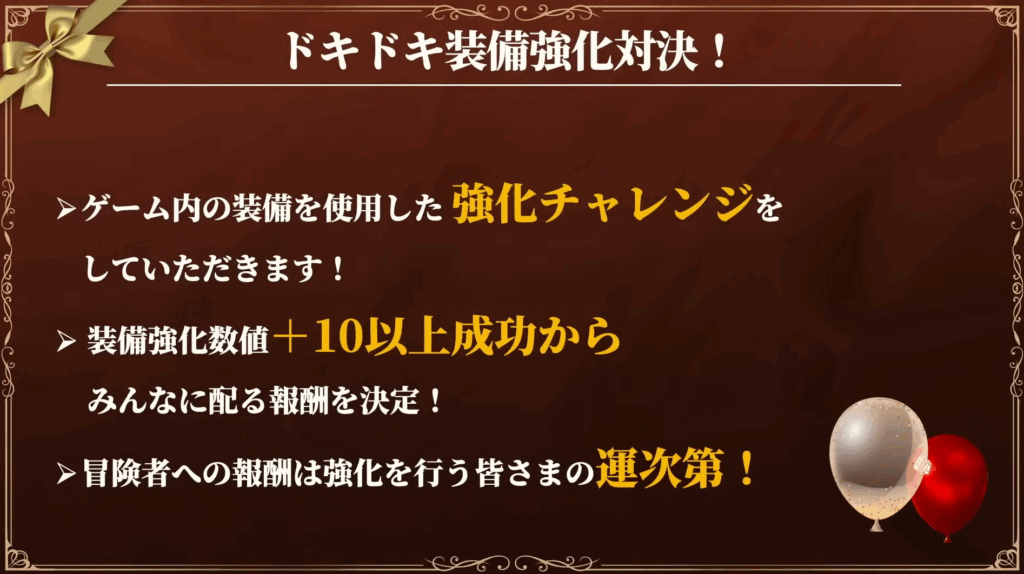最近やってる「強化結果次第で報酬を配布!」というイベントです(笑)