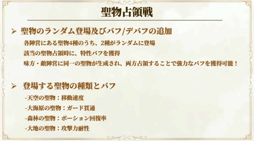 - 敵聖物獲得時にはデバフ効果も付くなど戦略性が向上。