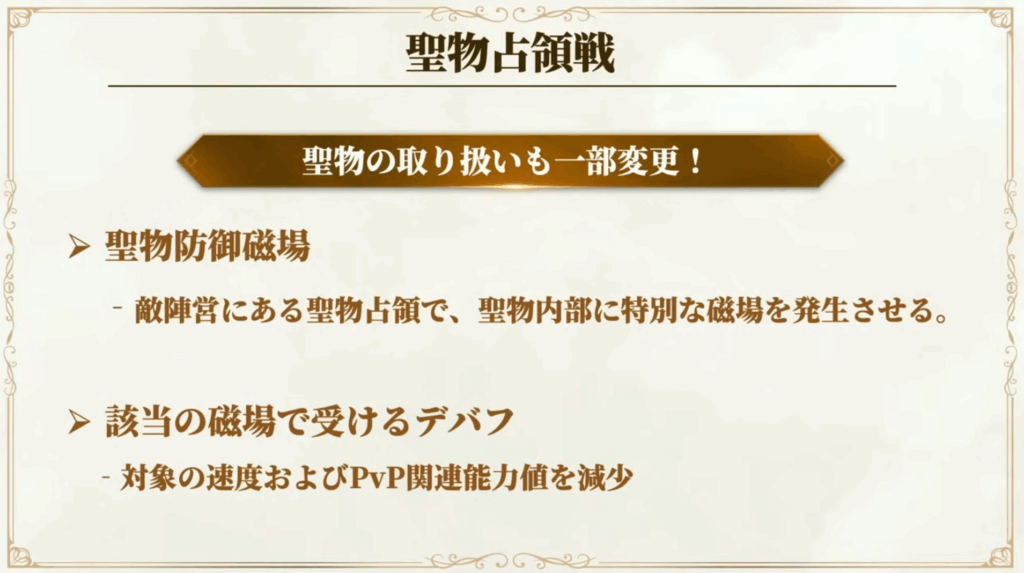 聖物占領戦に関する更新情報です!
