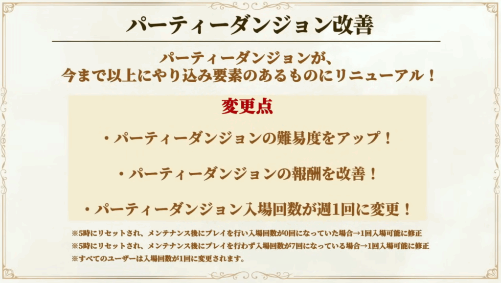 - パーティダンジョンの変更