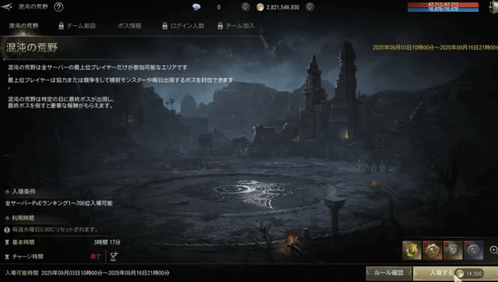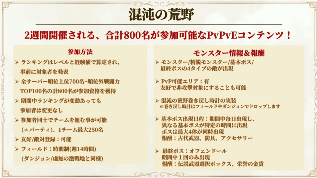 - 混沌の荒野(新PvPvEコンテンツ)