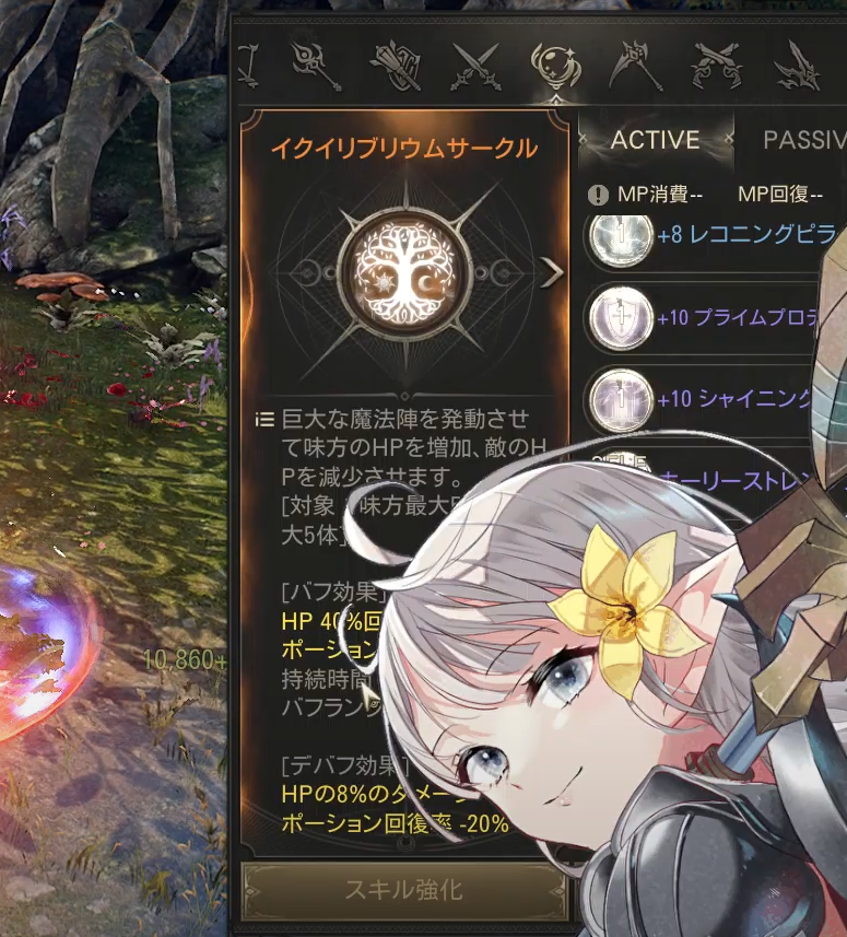 生き残りにおける宝珠の伝説スキルである「イクイリブリウムサークル」が見てわかる通り