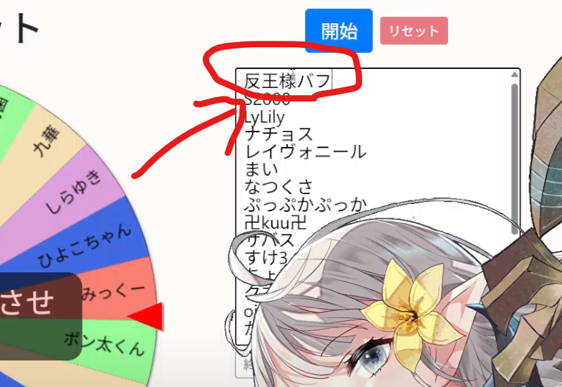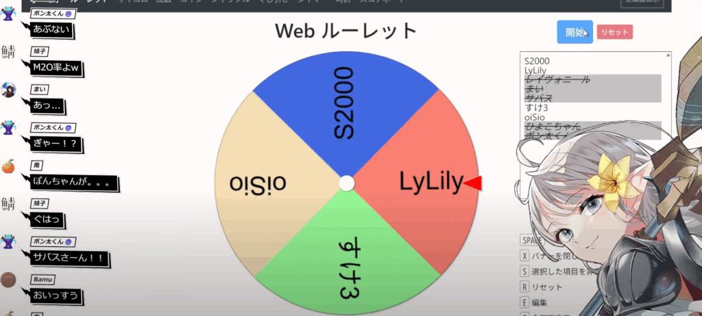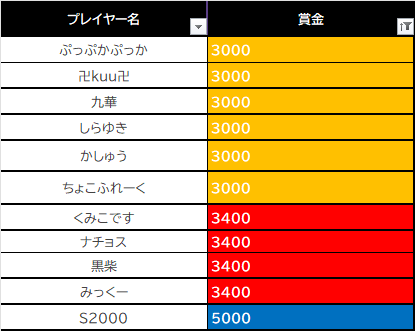 上記ナチョスさんから以降で、ルーレットに当たった人から一人ずつ減らしていき