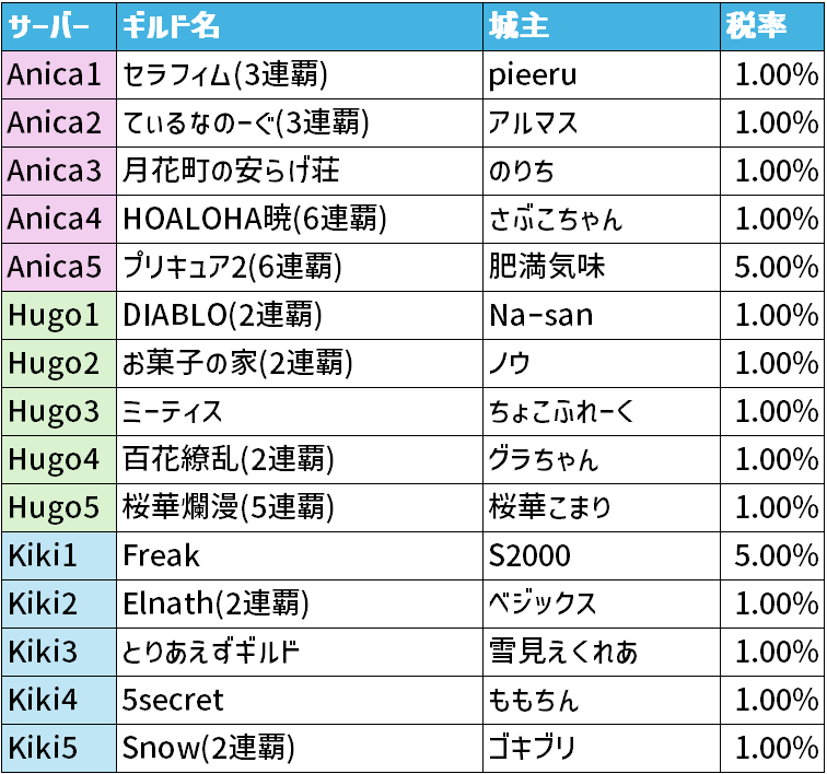 本日は昨日行われたローカル攻城戦の城主に関してまとめていきます。