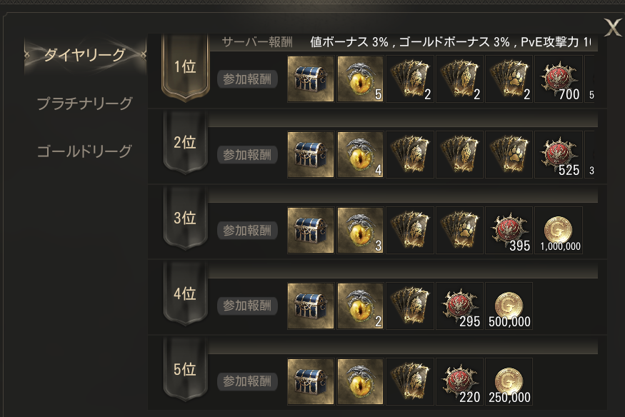 また、ダイヤリーグ、プラチナリーグ、ゴールドリーグと分かれてますが