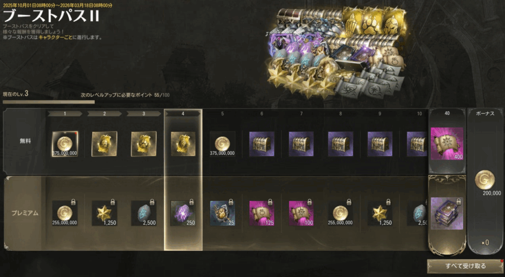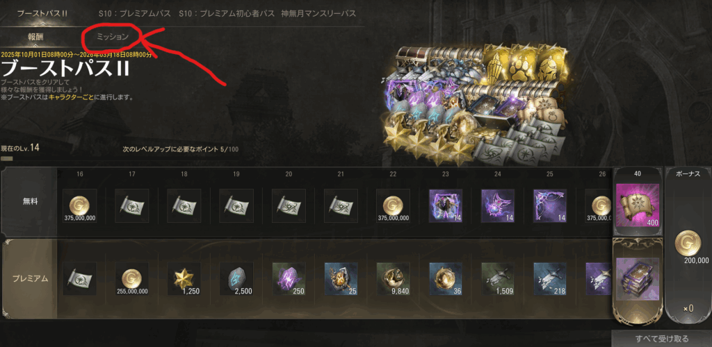 が獲得でき、さらに課金してブーストパスプレミアムを開放すると