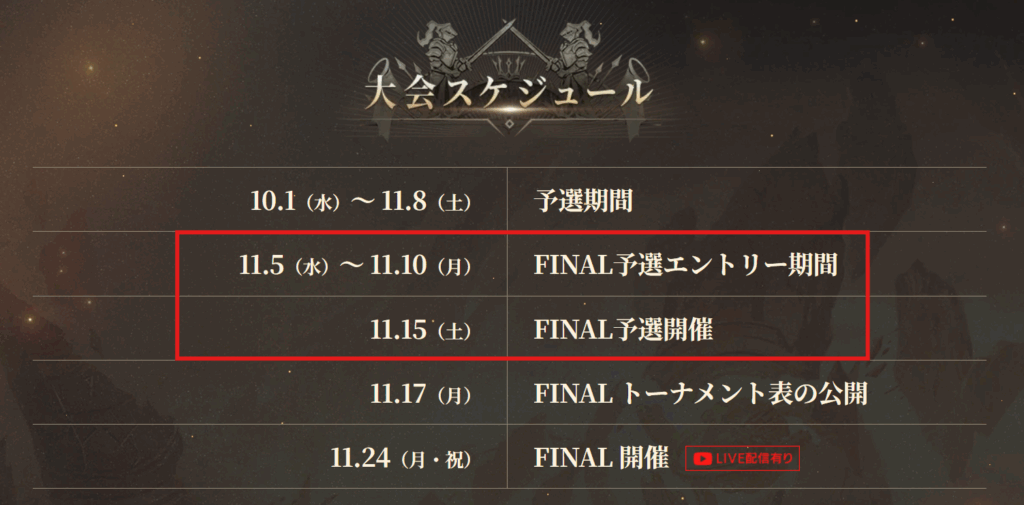 11.5(水)~ 11.10(月)は「FINAL予選エントリー期間」となっており