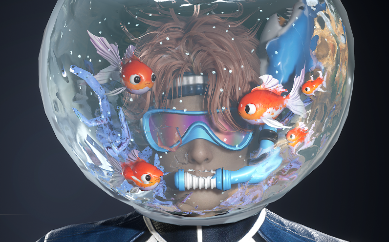 顔の水槽の中にいる魚のうち、金魚っぽい魚の名前は?
