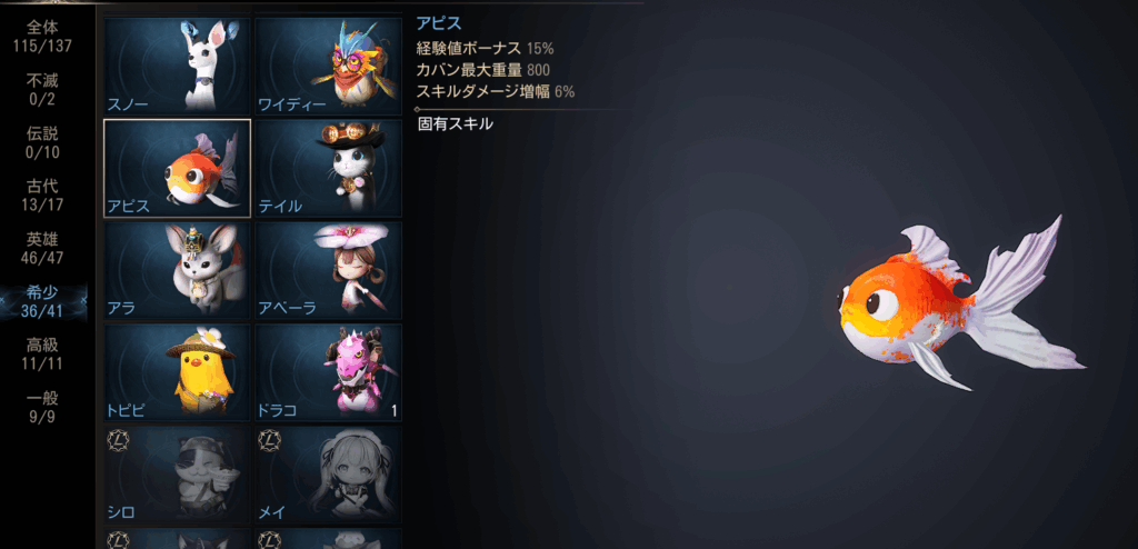 そう、この金魚ですが「希少ランク」ペットの「アピス」です!