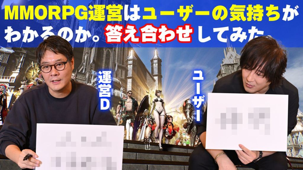 約1周年記念くらいに行われた「ファミ通.com」様で行われた「MMORPG運営はuserの気持ちを理解できているのか。」という恐るべき企画に参加したはくしんさんと椎名慶治さんの記事について出題。