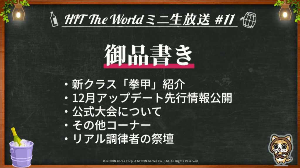 生放送最初のお題は11月26日から実装される新クラス「拳甲」に関する項目から!