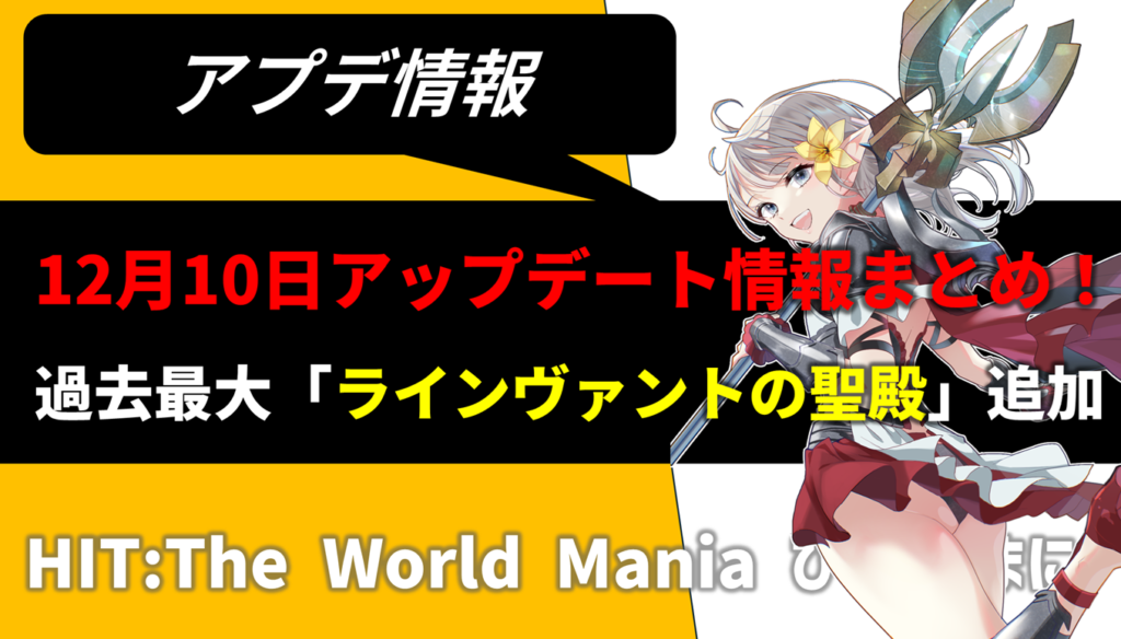 いよいよ最強の1か月が始まる おはこんにちばんはひーまにです! いよいよ12月10日の本日から超大型コンテンツ 「ラインヴァントの聖殿」がスタートします! メンテナンス時間もいつもより長めなのでご注意ください! 本日は 12月10日(水) 7:00 ~ 13:00 ...