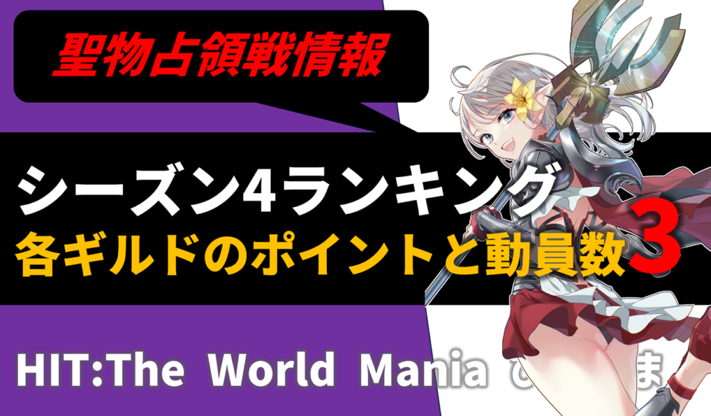 新しいシーズン開幕! おはこんにちばんはひーまにです! 聖物占領戦で新しいシーズンが11月26日から始まってます! そのルール上、しっかりランキングを追いかけていくと各ギルドの参加人数や勝率などを見ていくことが可能であり ひーまにではこまめに追... -