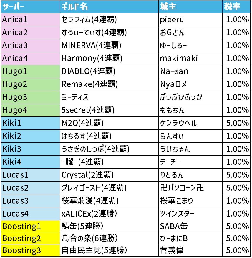 果たして今週の城主はどのギルドが取ったのか!