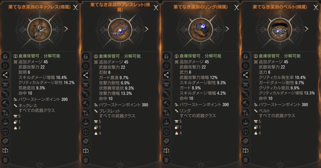 なお、武器は攻撃速度4.2%、防具は移動速度が4.2%。、アクセサリーは詠唱速度2%が最終着地点です!