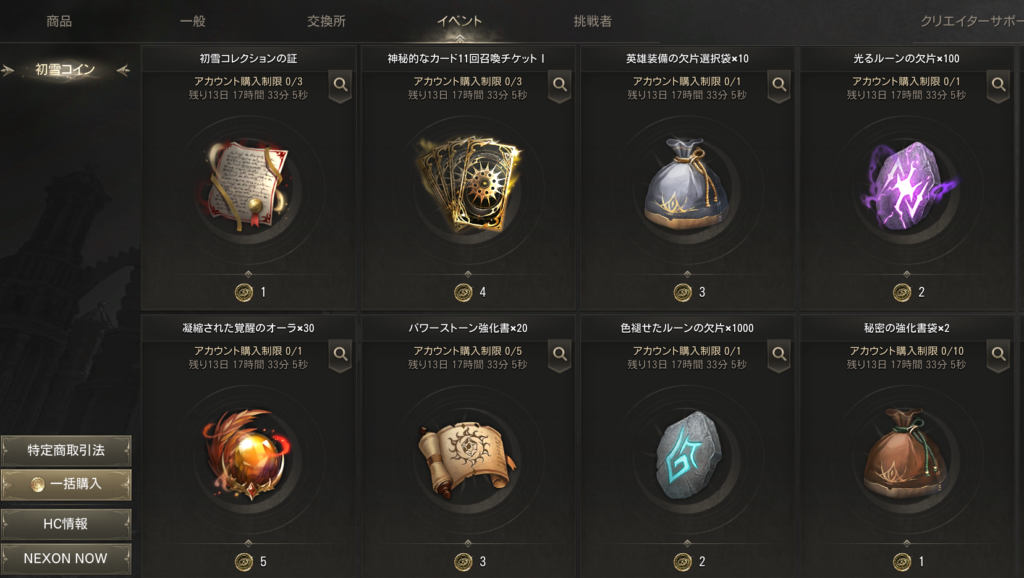 BINGOなどの景品でゲットできるコインと交換できるショップです。