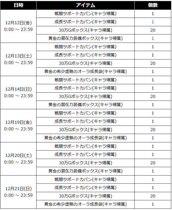 12月19日(金) 0:00 ~ 12月21日(日) 23:59