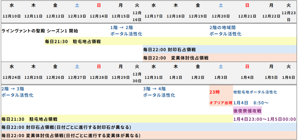 今回のコンテンツのスケジュールをざっとカレンダーにまとめてくれてます!