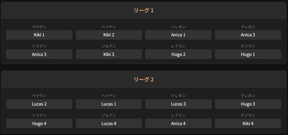 サーバーマッチング (8サーバー × 2リーグ)