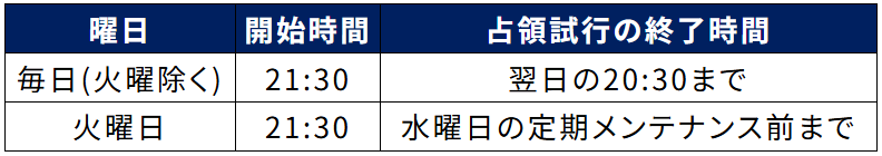 毎日21時半から開始されて翌日の20時半までの時間行うことができます!