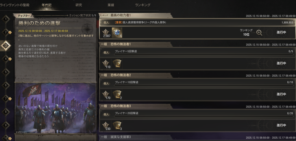 現在はそのチャプターで稼いだ個人資源の獲得数になっていたりと
