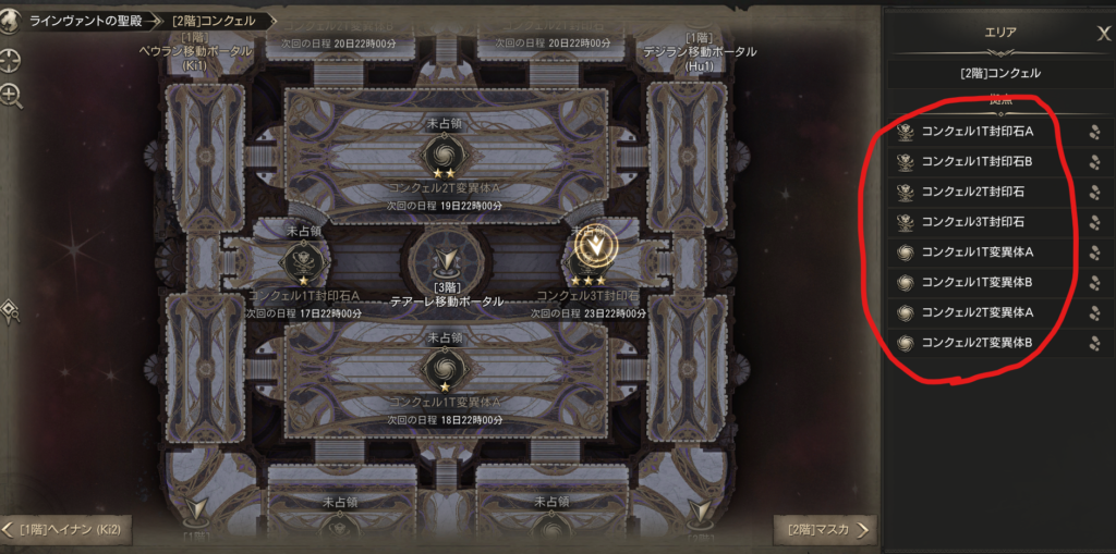 ラインヴァントの聖殿では「チャプター」が進むことで階層などが解放されていきます。