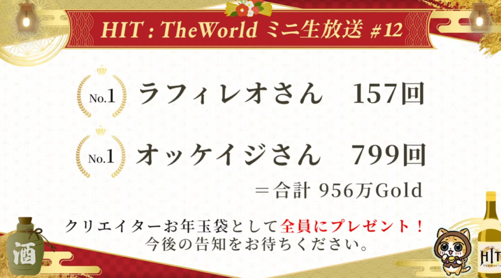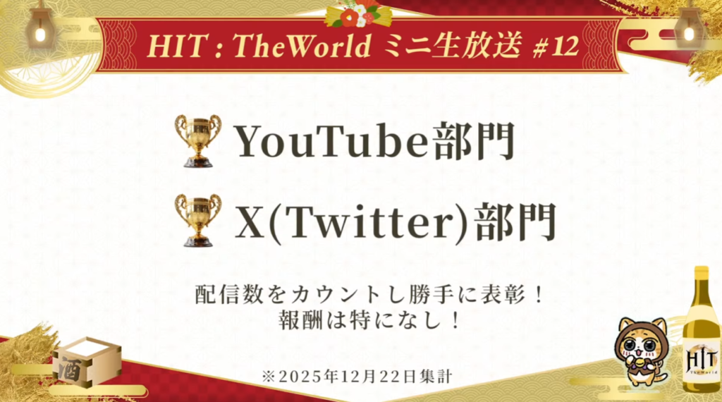 2026年1月1日に公開された、年末年始恒例「HIT : The World」公式生放送(第12回)のレポート記事。