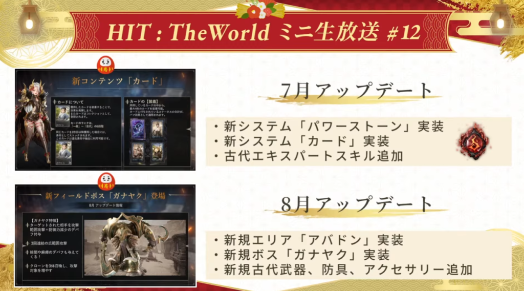 - 7-8月: パワーストーン、カード成長要素、新エリア「アバドン」、古代装備。