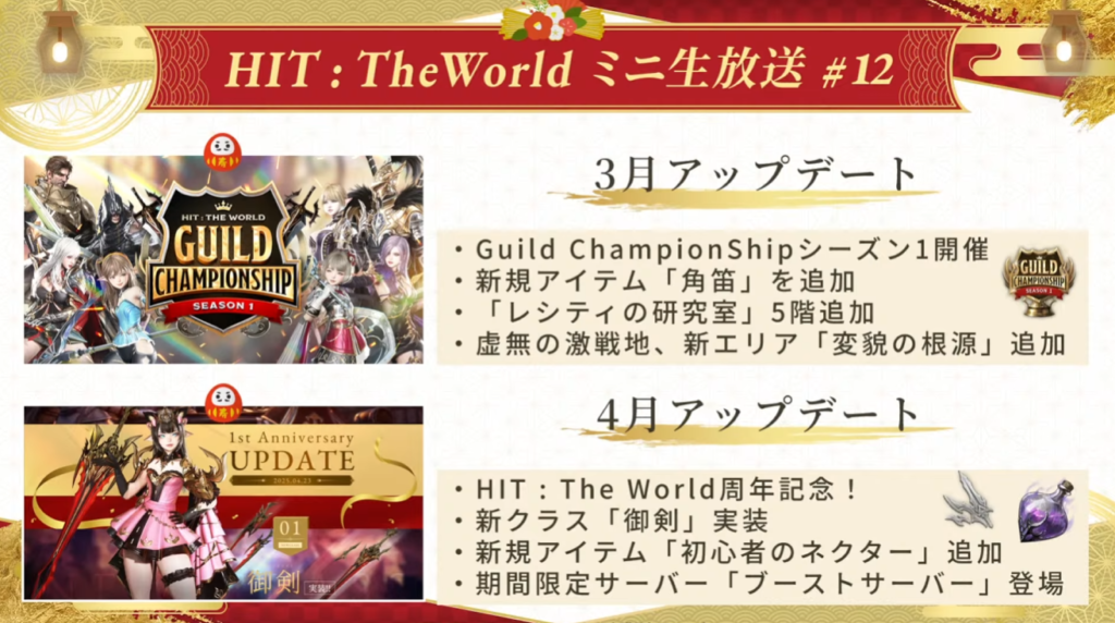 4月は1周年でブーストサーバーの開催や新クラス「御剣」などの実装と大規模アップデートがありましたね!