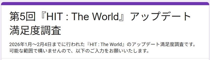 第5回『HIT : The World』アップデート満足度調査