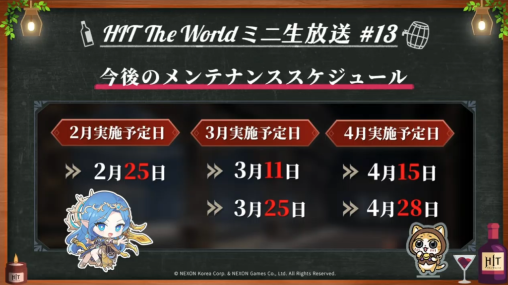 こちらは今後のアップデートメンテナンススケジュールです!