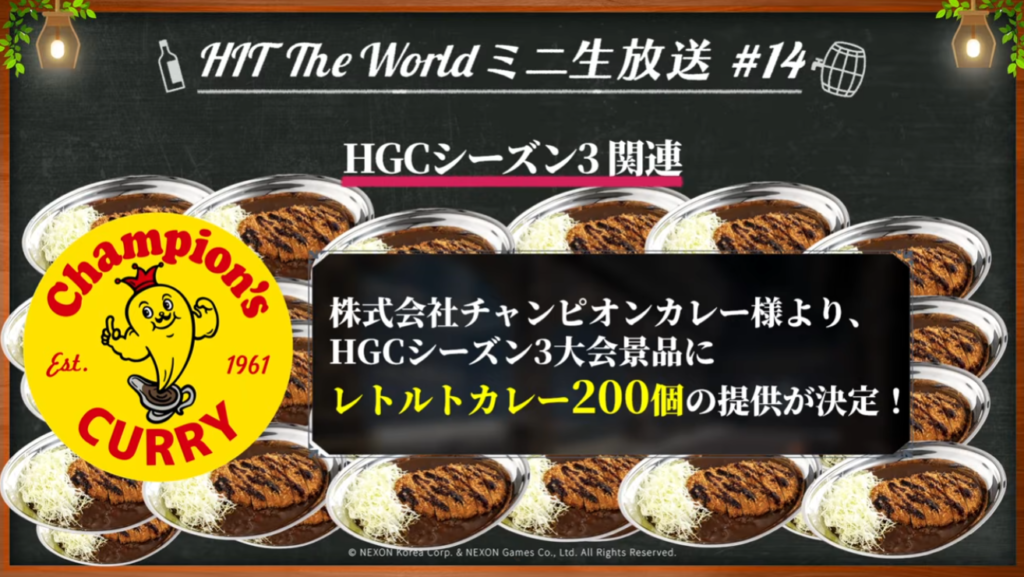 大会の商品、なんとチャンカレ様とのコラボでレトルトカレー200個を提供という発表がありました!