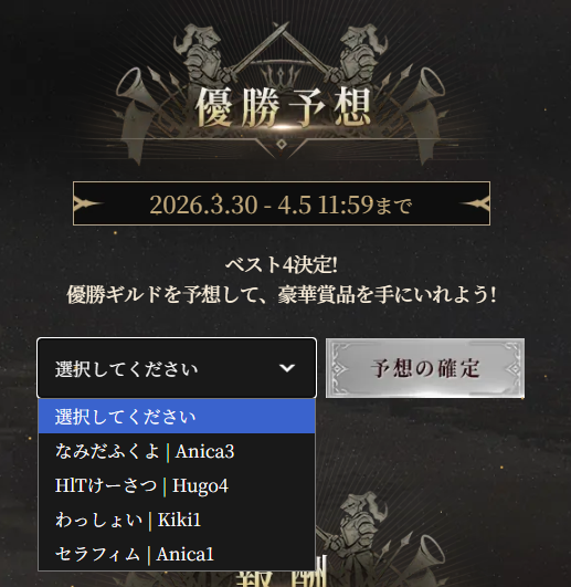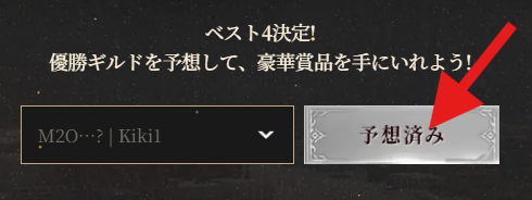 本日行われるギルドチャンピオンシップの優勝ギルドを予想して選択することで