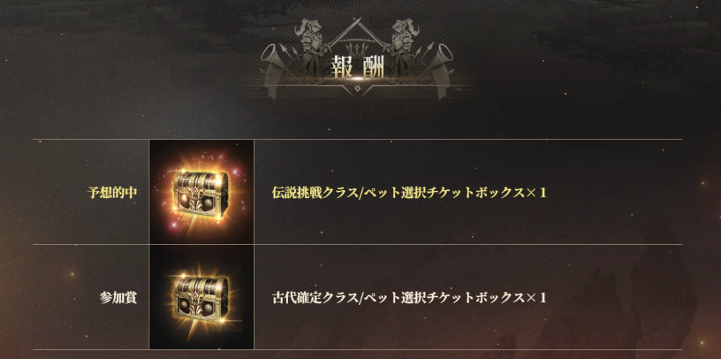 100%古代ランクのペットかクラスを獲得できるチケットボックスが貰えます!