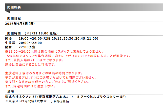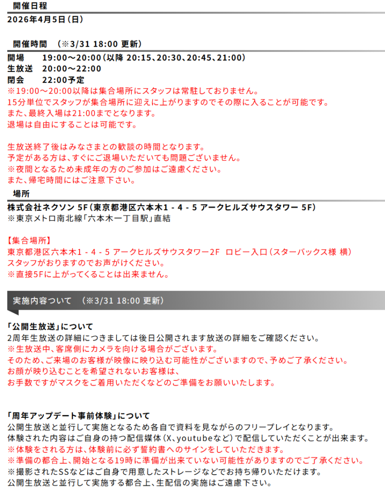 さらに公式生放送は公開かつ体験会もできる生放送となってるので